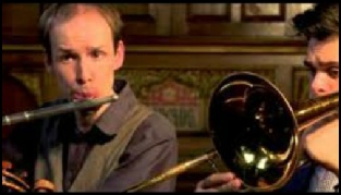 Together with fellow Guildhall graduates trombonist Miguel Tantos and violist Drew Balch, he formed the Prima Volta Ensemble. This ground breaking ensemble performed entire concerts where every note is improvised, taking all their themes, keys, forms and abstract ideas from suggestions from the audience. Typical concerts would include pieces in a range of styles, from renaissance or baroque pastiches right up to contemporary languages. The ensemble frequently led workshops in improvisation, including a course at Trinity Laban, and a number of residencies with Aldeburgh Young Musicians.